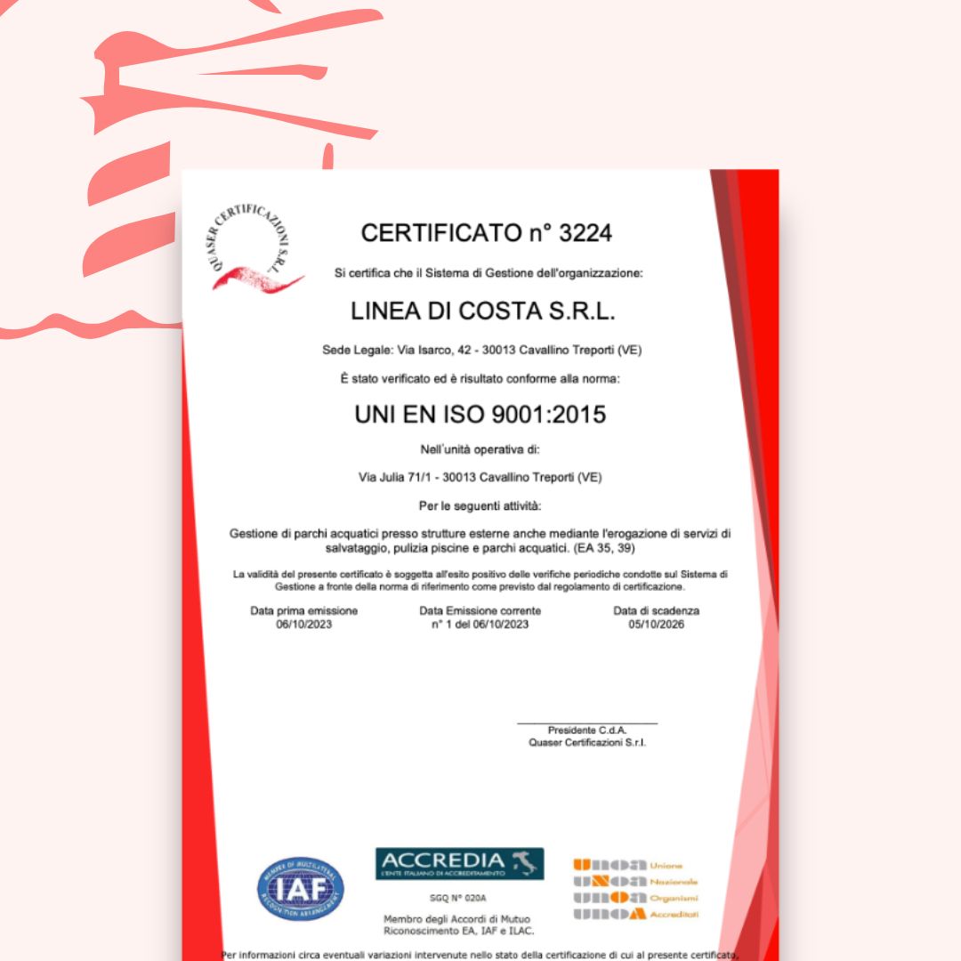 La nostra azienda ha ottenuto la certificazione ISO 9001, garanzia di qualità e impegno per il miglioramento continuo.